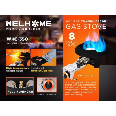 Deskripsi Produk WELHOME WKC 380S: Fungsi utama dari gas stove (kompor gas) adalah sebagai alat memasak yang menggunakan bahan bakar gas (LPG, LNG, atau gas alam) untuk menghasilkan panas api. Berikut beberapa fungsi detailnya: Memasak makanan untuk merebus, menggoreng, menumis, memanggang, atau mengukus. Mengatur panas api bisa diatur besar–kecil sesuai kebutuhan, sehingga proses memasak lebih… selengkapnya